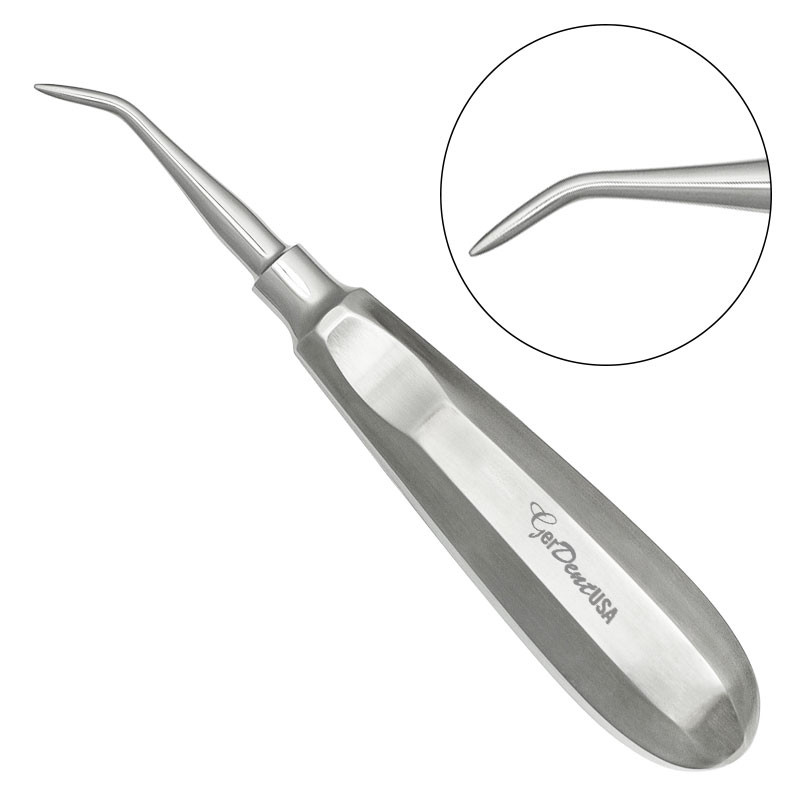 Cryer elevators are designed to access and luxate the teeth within deeper roots. Furthermore, this dental instrument also helps to make tooth extraction from the periodontal ligament more convenient. It targets the distal root of the mandibular molar with a sharp-angle blade that ensures accuracy and efficiency.